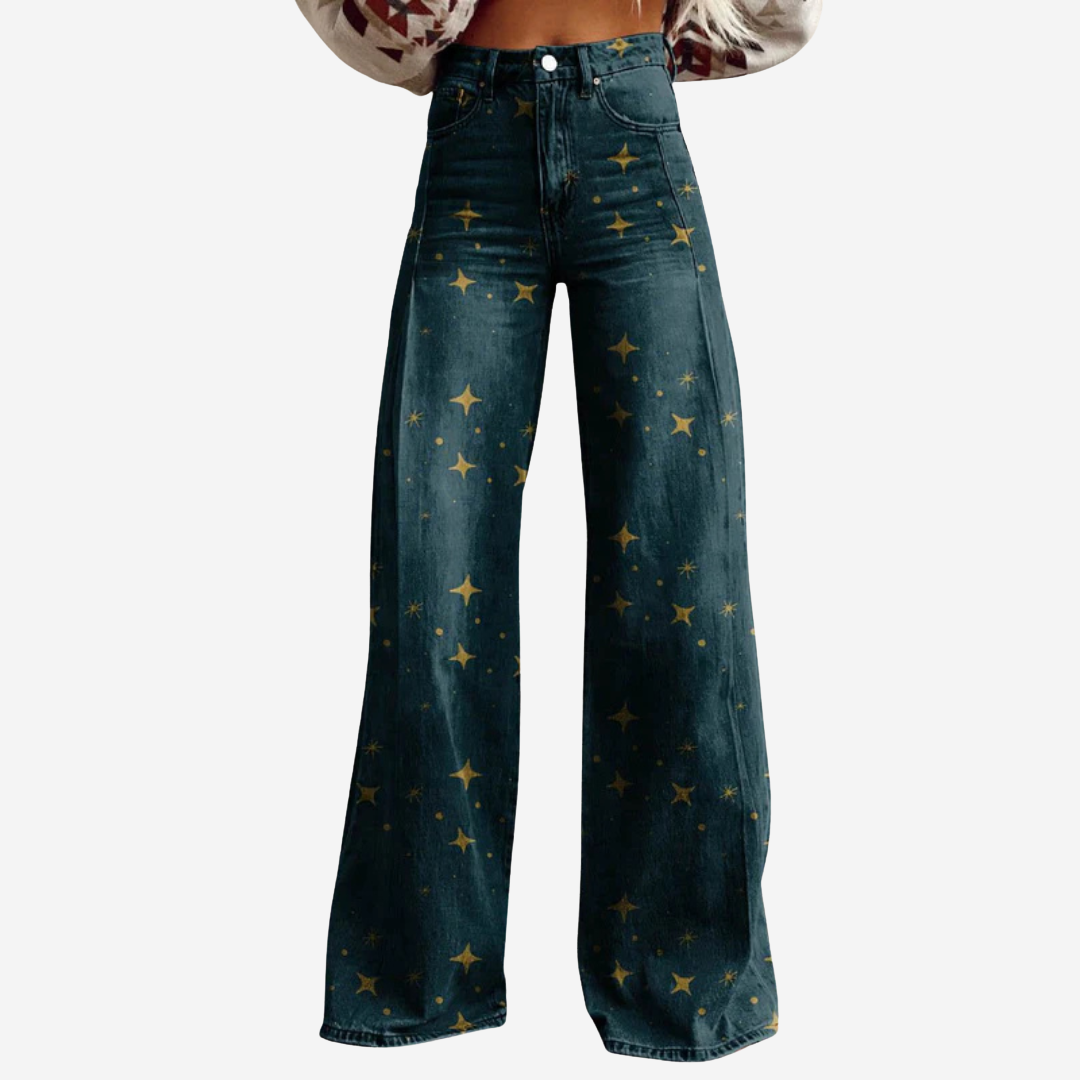Disse brede buksene med høy midje kombinerer komfort og stil med en leken, bohemsk twist. Perfekt for alt fra musikkfestivaler til caféturer – eller bare de dagene du trenger litt mer farge i livet ditt.