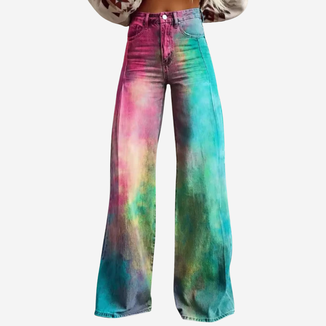 Disse brede buksene med høy midje kombinerer komfort og stil med en leken, bohemsk twist. Perfekt for alt fra musikkfestivaler til caféturer – eller bare de dagene du trenger litt mer farge i livet ditt.