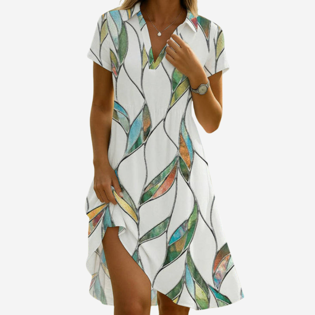 SVEA | Elegant figursydd klänning med akvarelltryck